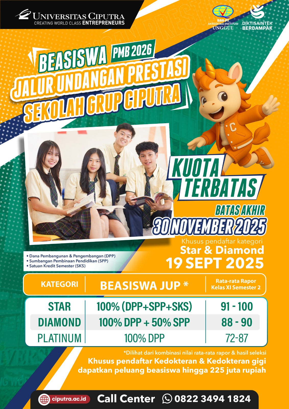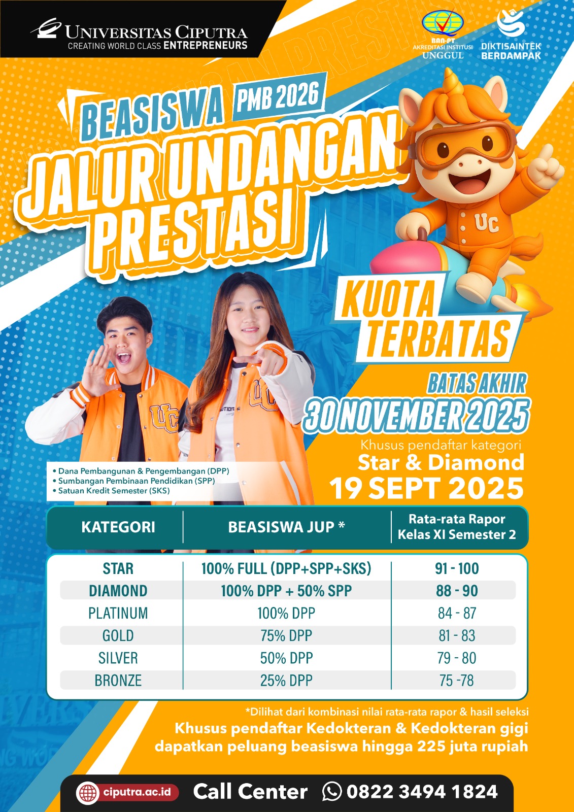 Sebagai bentuk komitmen kami dalam menjaga standar keamanan untuk melindungi kerahasiaan data pribadi. Kami menghimbau untuk selalu menjaga kerahasiaan informasi, termasuk Username, dan kata sandi, serta tidak membagikannya kepada pihak mana pun, termasuk kepada pihak yang mengatasnamakan Universitas Ciputra. Universitas Ciputra tidak pernah meminta data rahasia melalui sarana komunikasi apa pun. Apabila terdapat indikasi aktivitas mencurigakan atau potensi penyalahgunaan data, diharapkan segera menghubungi layanan resmi melalui email ict-support@ciputra.ac.id atau whatsapp center ICT Support Center +62 813-5175-2727 untuk penanganan lebih lanjut.